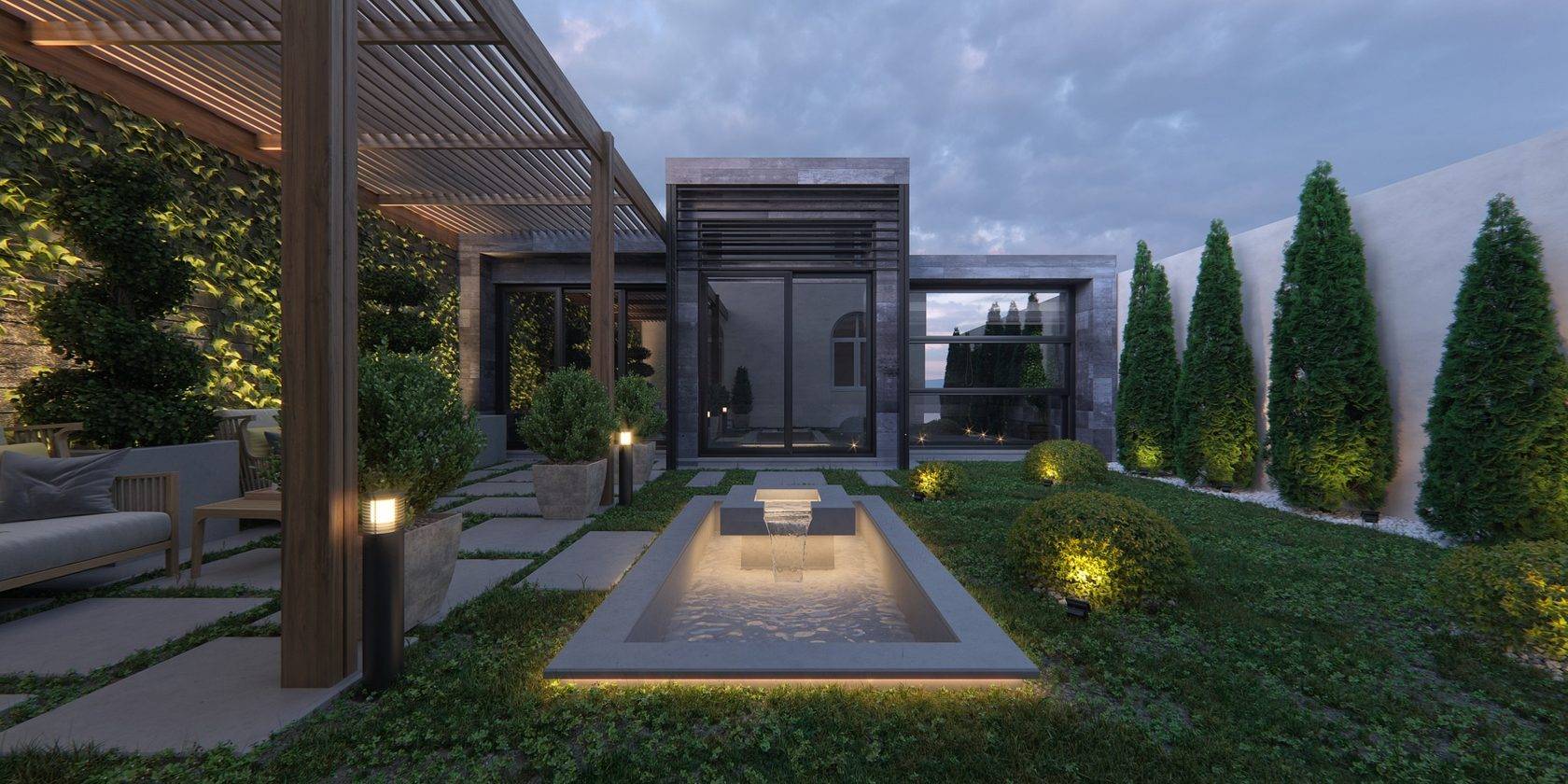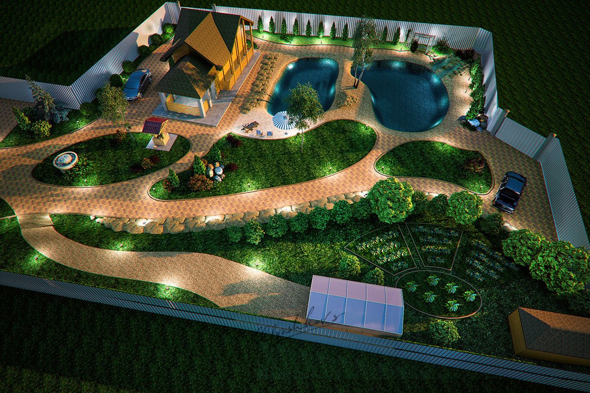 | Крупные декоративные элементы и конструкции | Бассейн, пруд, беседка, терраса, ограждения (заборы) и другие элементы. |