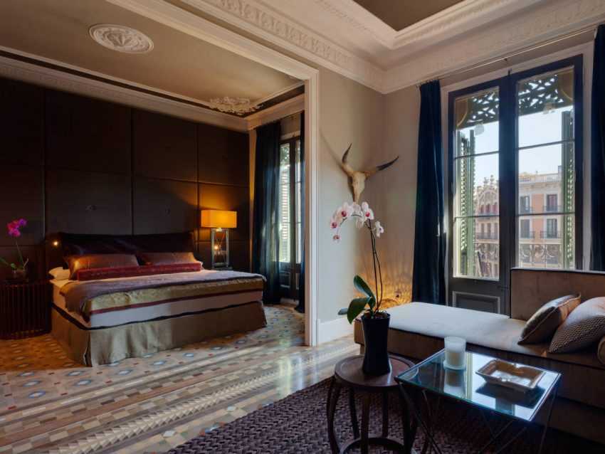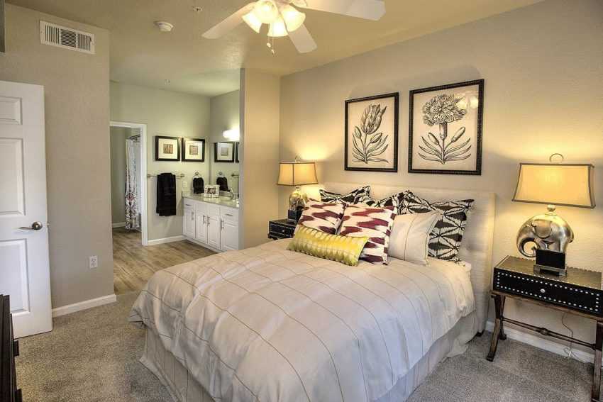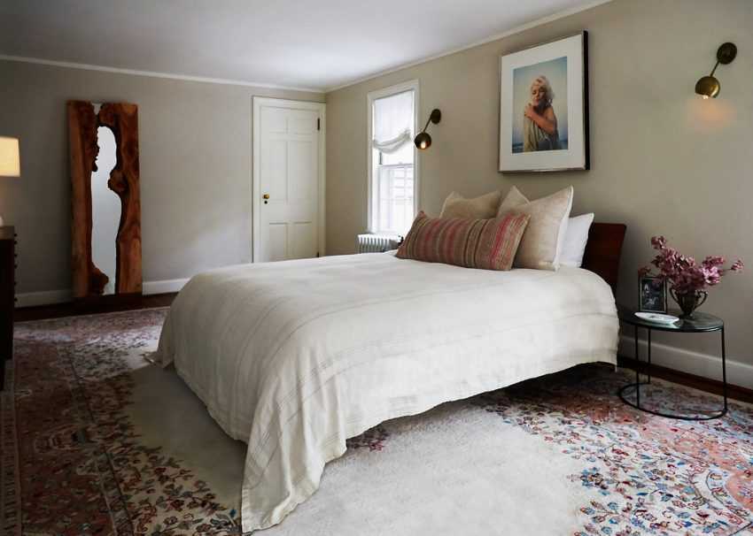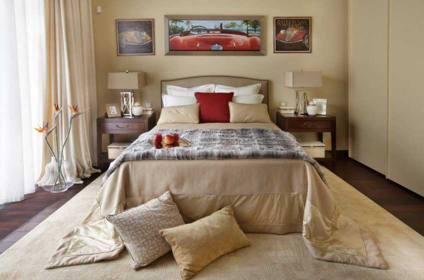 Основной предмет мебели, который должен находиться в центре комнаты — большая удобная кровать, поставленная изголовьем к стене.