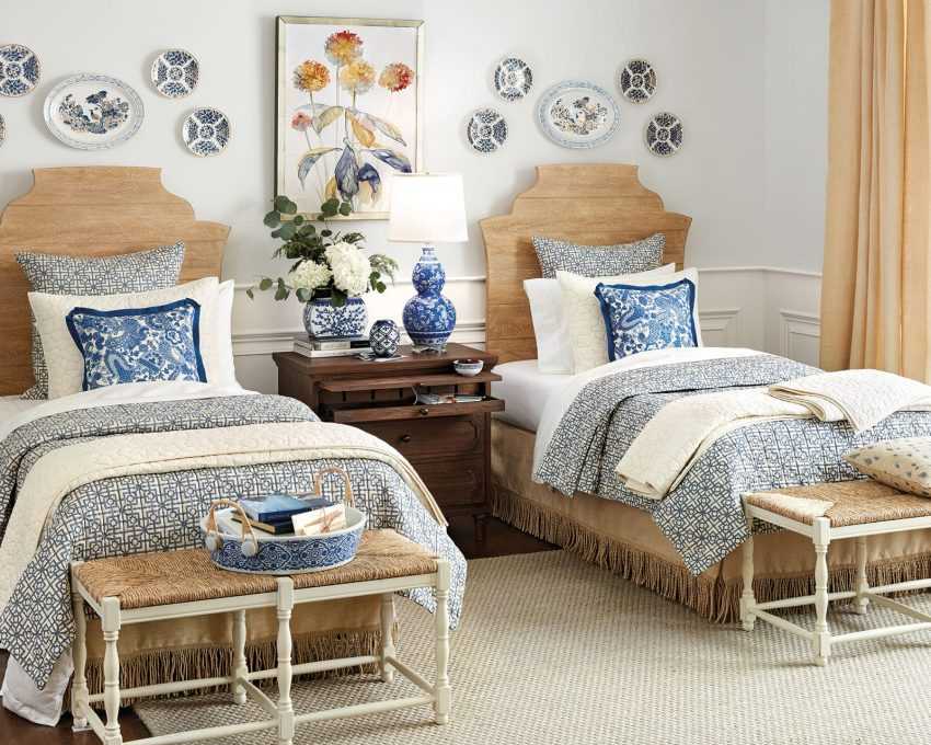 Для обеспечения большого количества свободного пространства кровати размещают вдоль стен, а не в центральной части комнаты.