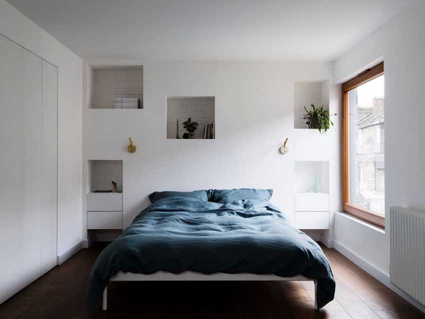 Глубокие ниши проектируются исходя из размеров кровати. Для двуспальной кровати ниша ставится у изголовья, а для односпальной кровати больше подходит ниша, расположенная вдоль стены.