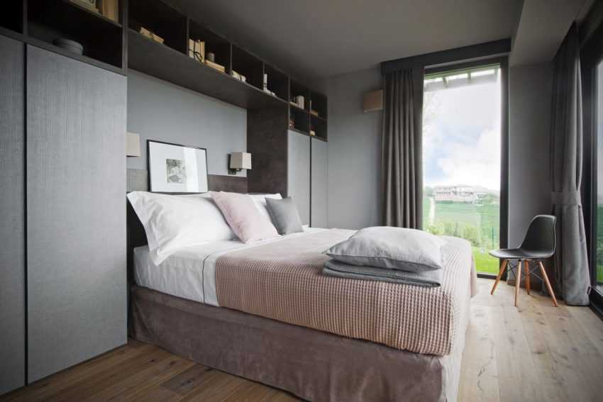 Достаточное пространство с каждой стороны кровати поможет избежать ощущения «давящих стен»