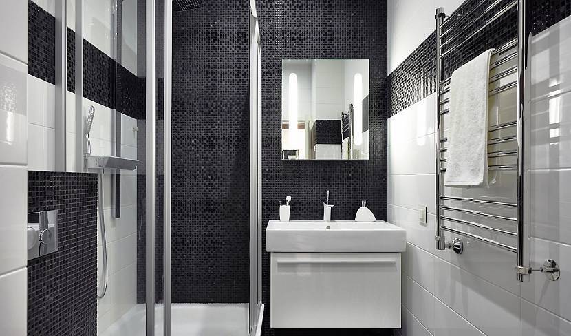 Черно-белый дизайн маленькой ванной комнатыИсточник house-biz.ru