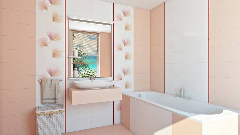 Оформление небольшой ванной в персиковых оттенкахИсточник vogceramic.ru