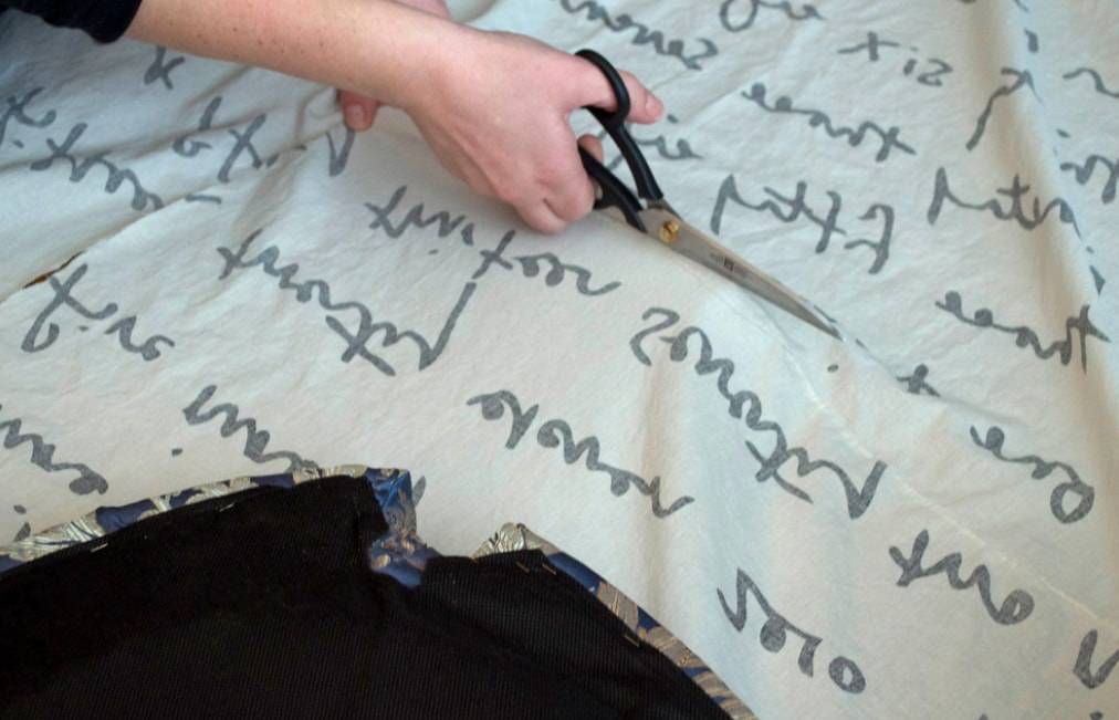 По тому же принципу вырезаем ткань с рисунком и приклеиваем ее поверх подкладочного слоя.