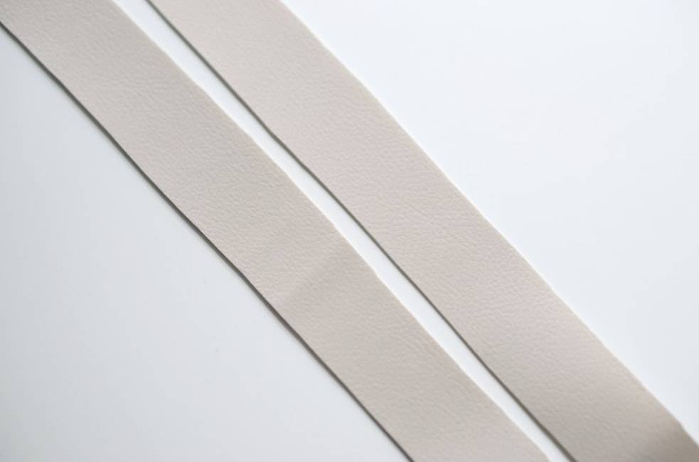 Для начала определяем желаемую ширинку полосок искусственной кожи и наносим на обратную сторону разметку.