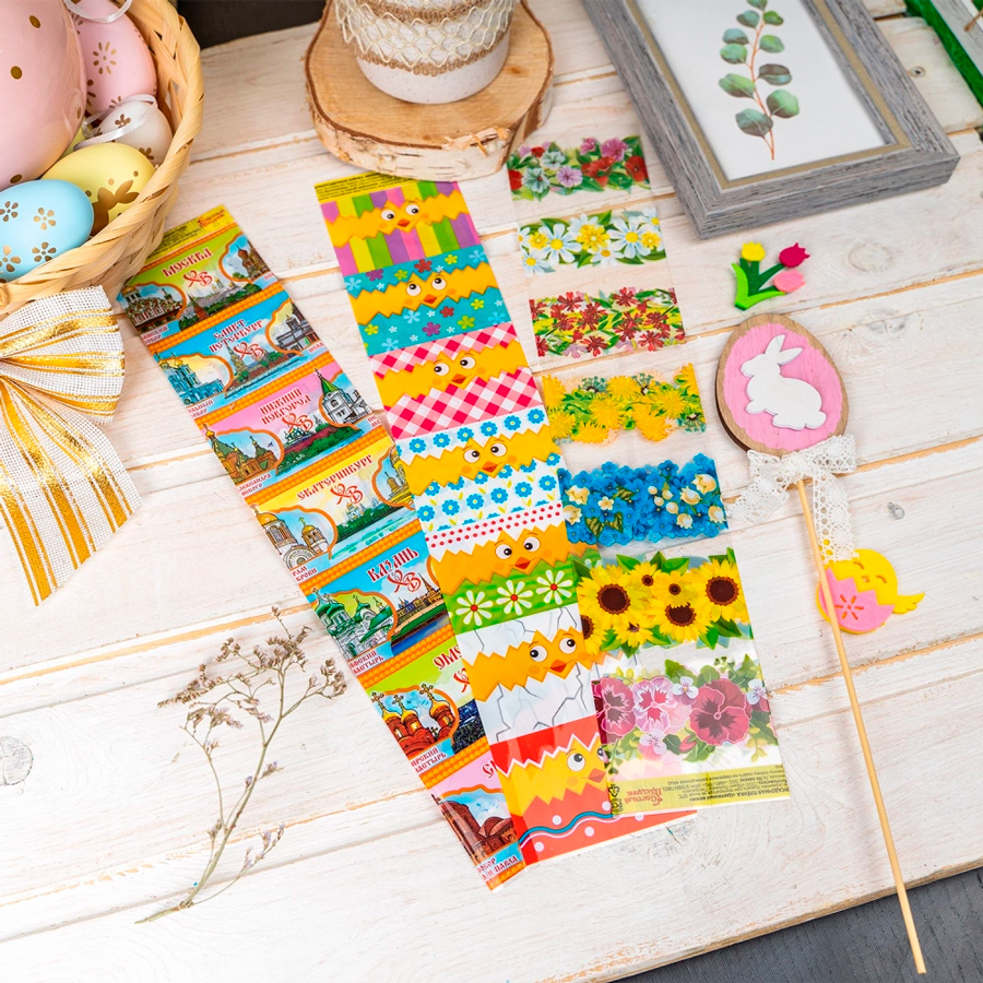 Быстро и легко украсить яйца можно с помощью термопленки. Нанесите пасхальные символы, орнаменты и другие рисунки. В наборе семь разных пленок. Стоимость упаковки – 40 копеек.