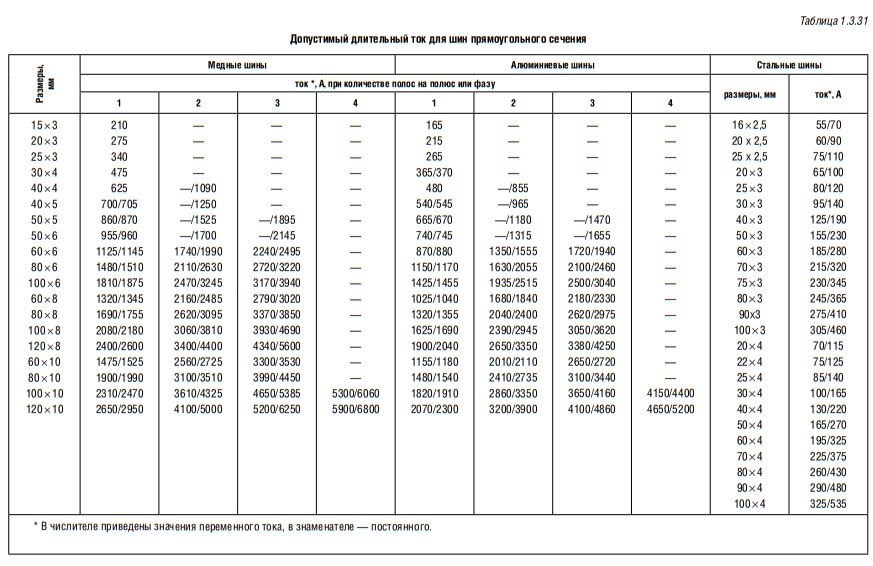 Однако на практике, применяется медь или латунь. При расчете сечения алюминиевых шин, по отношению к медным, применяется коэффициент 1.52.