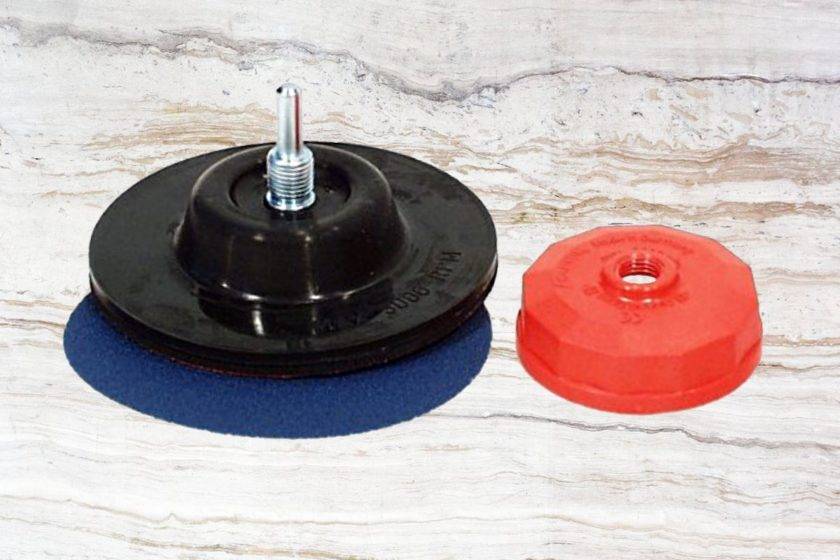 Чтобы приспособить дрель для шлифовальнх работ, понадобится специальная насадка, схожая по конструкции с насадкой для болгарки — шлифовальная тарелка. Часто насадка идет в комплекте с переходником, чтобы устанавливать ее как в патрон дрели или шуруповерта, так и на болгарку.
