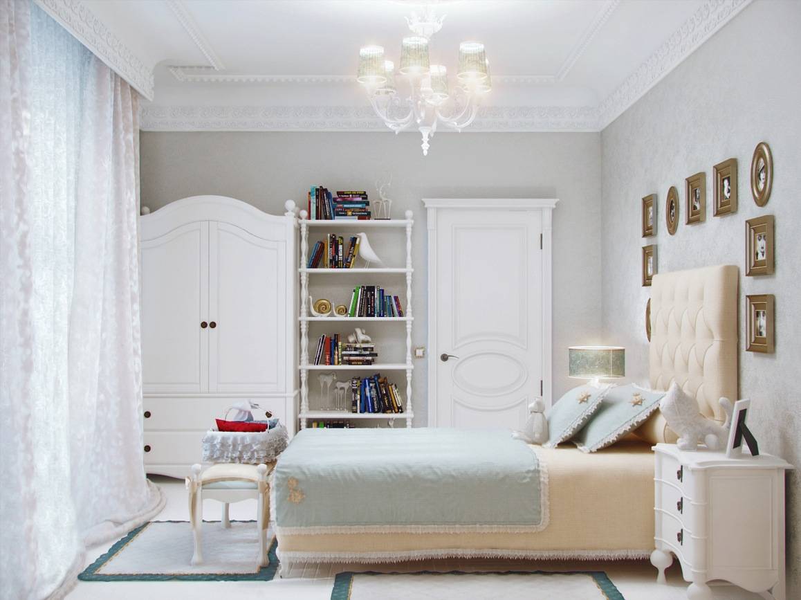 Комната в этом стиле понравится, наверное, любой девочке, даже поклоннице современных направлений. Классический располагает как к хорошей плодотворной работе, так и к романтическим мыслям. Молодая хозяйка сможет дополнить комнату фотографиями или картинами в красивых рамках, интересными статуэтками и элегантными аксессуарами.
