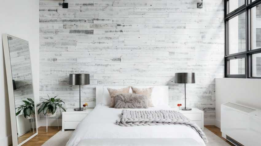 Монохромная отделка стен спальни
