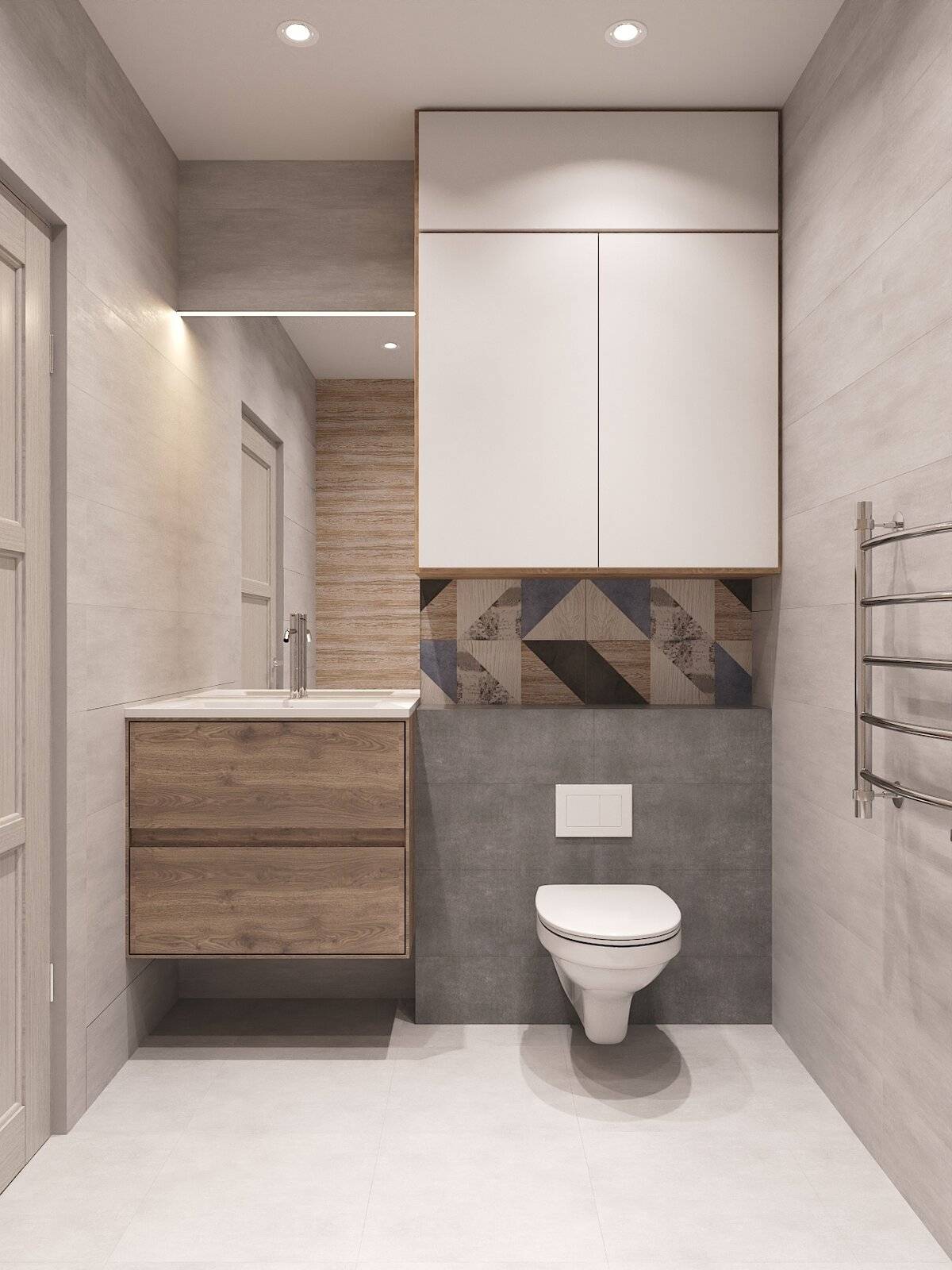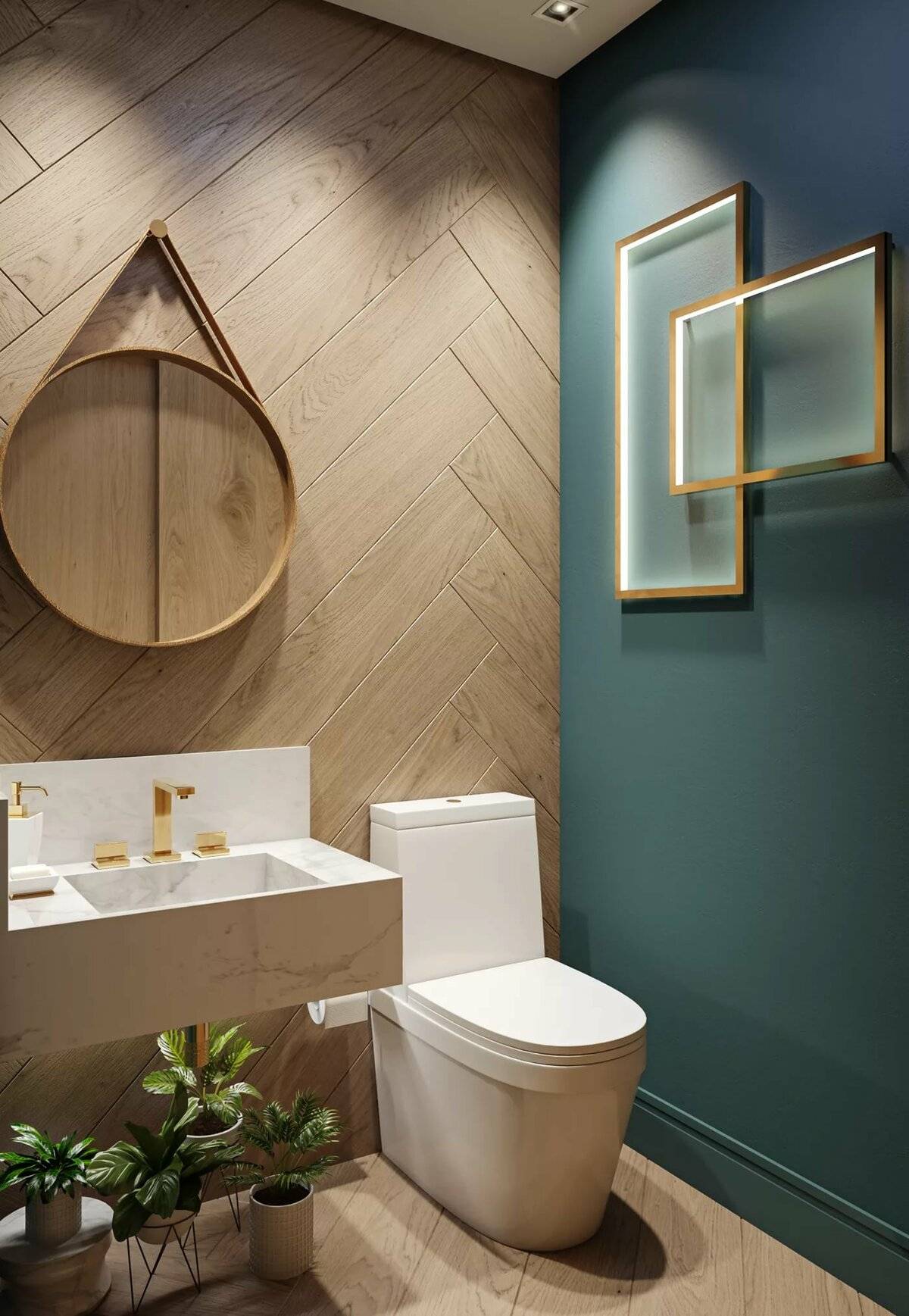 Также стоит ввести элемент типа фотообои или интересный узор (например, выложенный из плитки), который поможет выявить глубину и привнесет приятную атмосферу в туалет. Этот тип аранжировки можно наносить на всю стену или на ее части.