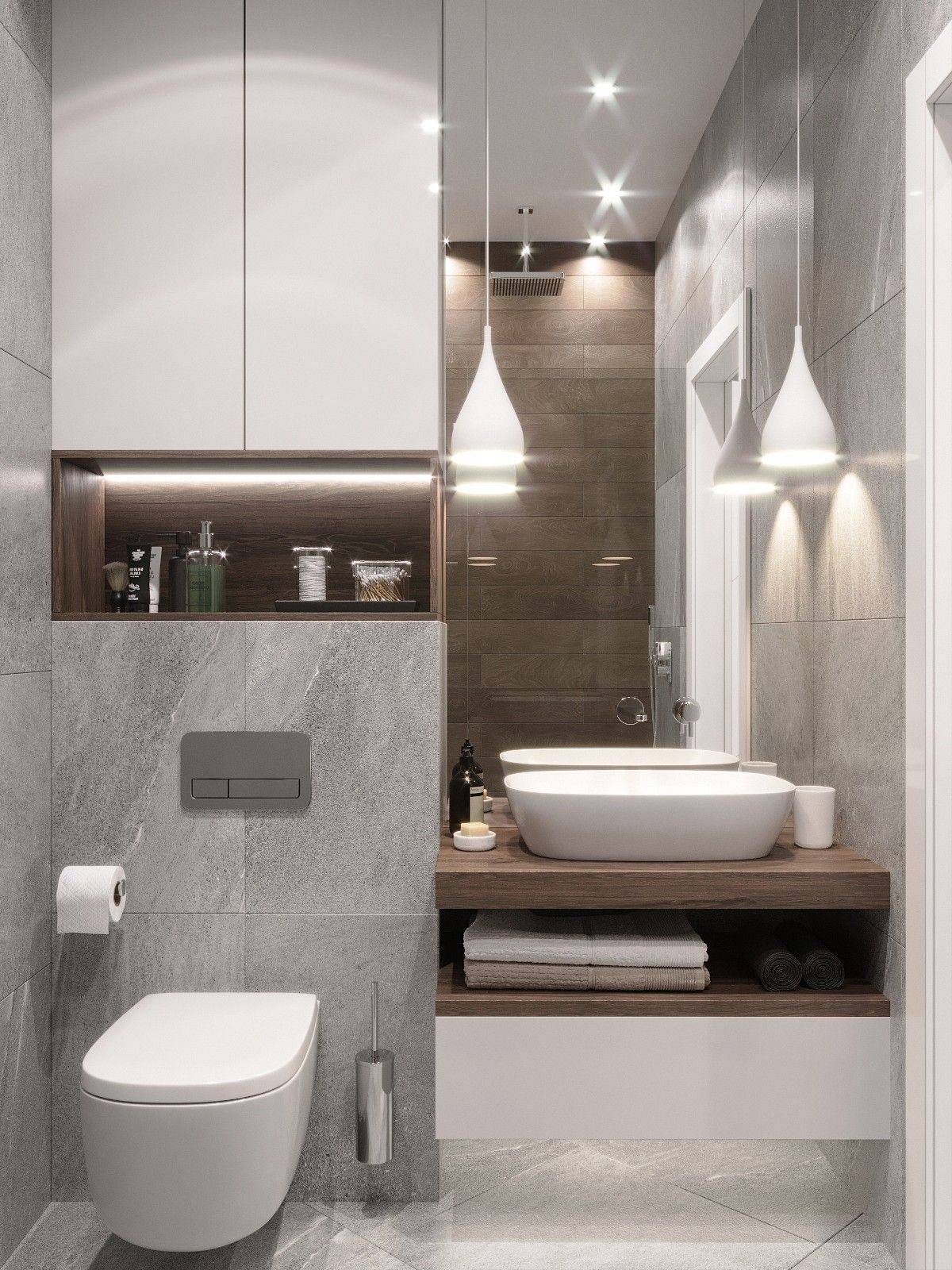 Несколько оттенков серого в сочетании с красивыми и живыми линиями станут неотъемлемыми элементами ванной хай-тек