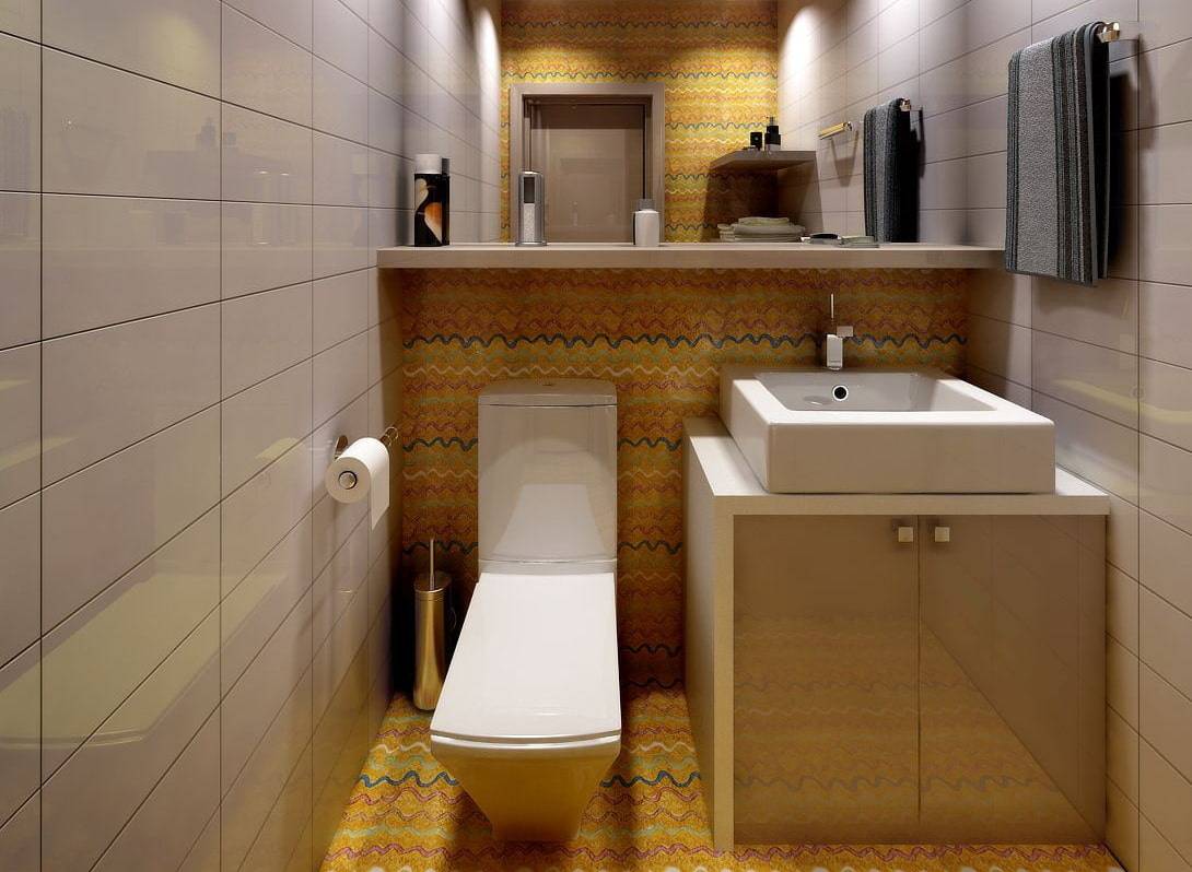 Коль мы уже затронули форму плитки, то надо развить тему до конца. В малогабаритных санкомнатах следует использовать плитку небольших размеров. Гармонично будут смотреться стены, выложенные маленьким квадратным кафелем в сочетании с мозаичным полом. Не подведут и привычные прямоугольнички. А вот элементы сложных, многоугольных форм в интерьере туалетной комнаты использовать не стоит. Такая кладка сожмет и раздробит крошечное пространство, что окончательно лишит его привлекательности.