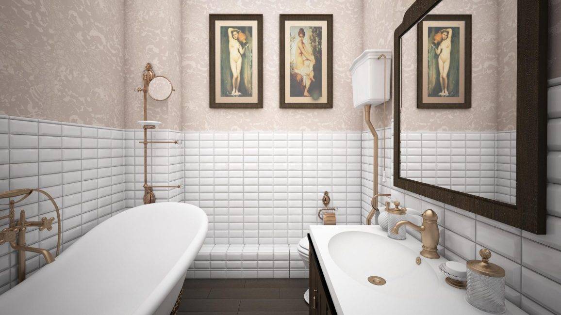 Площадь ванной комнаты достаточно маленькая, что позволяет сэкономить как на стоимости работы, так и на затраченном на нее времени