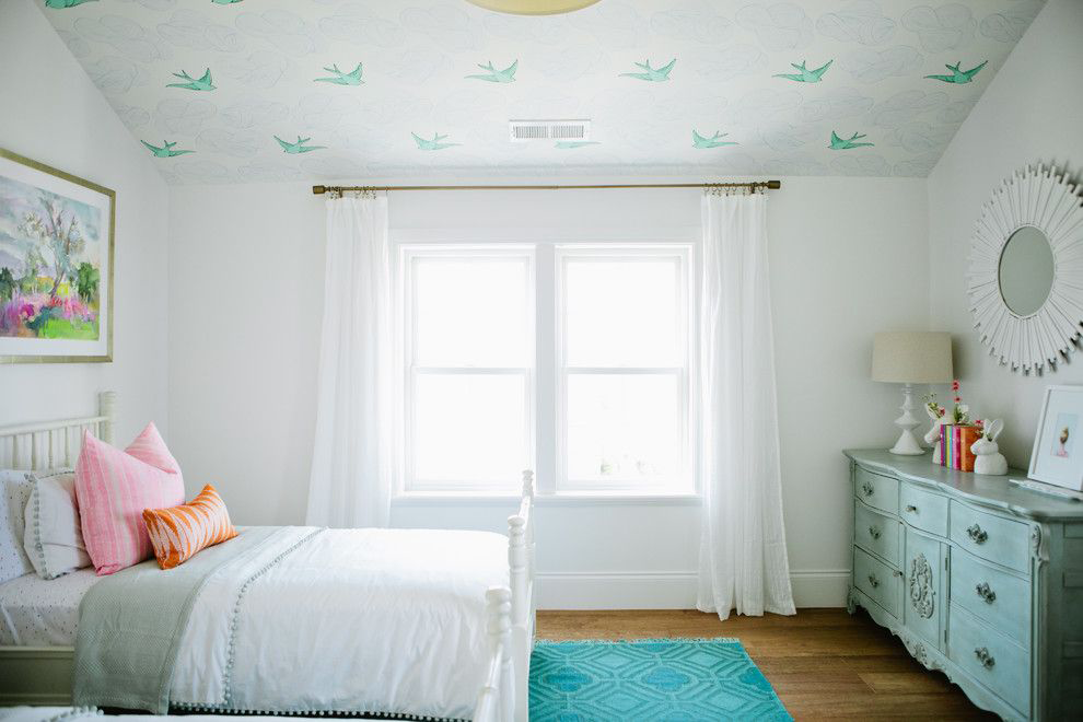 - «Изюминкой» интерьера становятся птицы, когда обои с их изображением наклеиваются на потолок.