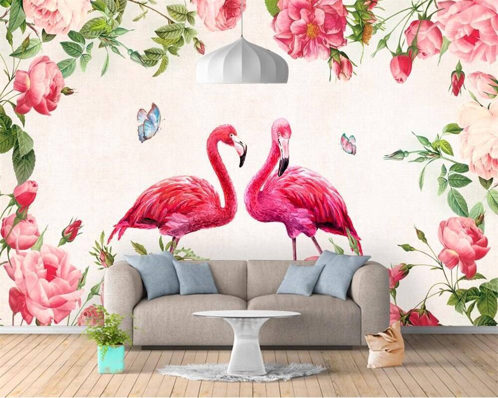 Обои с фламинго, не имеющие растительных включений, можно клеить даже на потолок; это довольно сложно и вызывает множество эстетических споров, зато точно позволит уйти от безликой и невыразительной обстановки. Птичьи сюжеты уместнее всего в таких стилистиках, как: