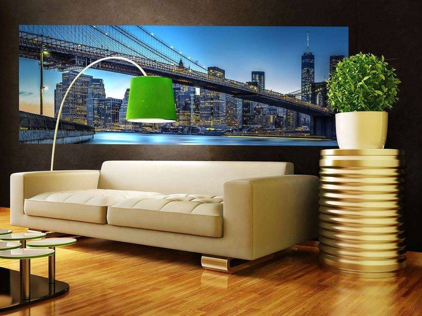 Часто выбирают обои в оттенках белого, черного и серого. Такие приглушенные тона сделают фото нью йорка в интерьере соответствующим остальным элементам дизайна, если ваша гостиная выполнена в этих цветах или могут стать прекрасным фоном для более ярких элементов интерьера. Например, если на изображении находится желтое такси, вы можете подобрать желтые подушки на диван или желтый плед, создавая интересную композицию хорошо продуманного интерьера.
