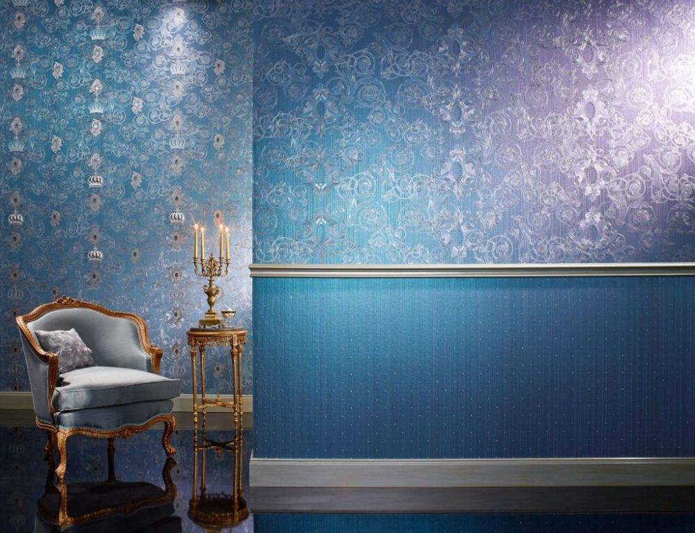 Гладкие флизелиновые обои предназначаются для покрасочных работ, которые не препятствуют полученному цвету в итоге (черный или бирюзовый). За счет того, что обои покрываются блестящими поверхностями, объемными декоративными прослойками из стекляруса, жемчуга, голографическими эффектами, подобрать покрытие можно на любой вкус и цвет.
