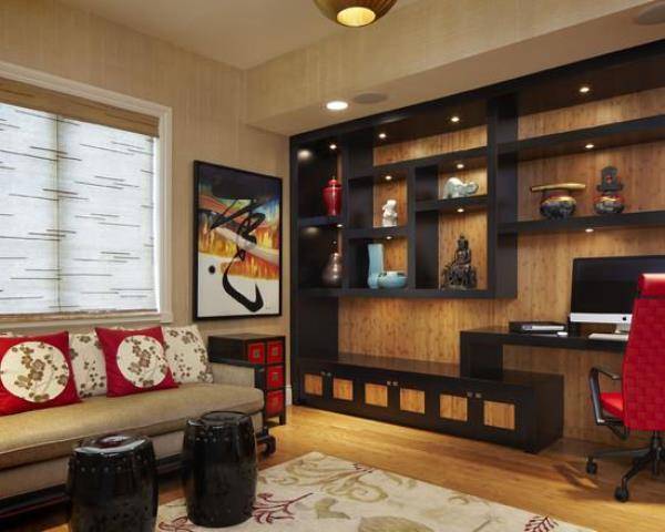 - Экзотические стили. Пейзажные обои с саванной, с баобабами или с текстурой черного дерева подойдут для африканских интерьеров. Бамбук, сакура и осенние леса Японии удачно дополнят восточный интерьер. А стилизованные под желтое, белое и золотое дерево обои будут сочетаться с египетским и среднеазиатским стилями.