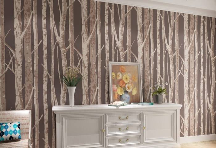 В каких интерьерах применяются обои с деревьями: