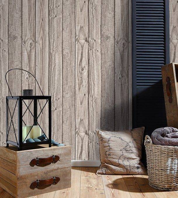По материалу можно найти обои под дерево: