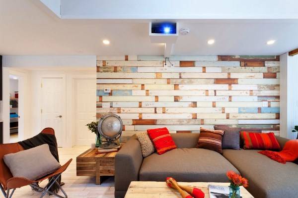 Деревянные обои в интерьере могут иметь серый, розоватый, песочный, желтый, белый и даже черный оттенок, и в зависимости от выбранного варианта обоев вы сможете менять общее восприятие дизайна комнаты.