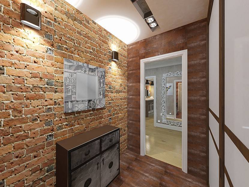 Однако, в маленьких прихожих не стоит применять отделку всех стен кирпичом красного темного цвета — это создаст ощущение ещё большей тесноты, такой интерьер будет весьма угнетающим.