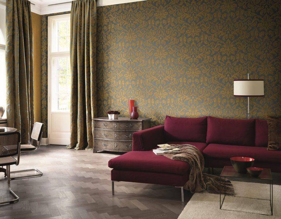 Эти покрытия, в основном, применяются в классическом направлении под старину и в стиле модерн. Для первого варианта характерны теплые тона, переливающиеся узоры, позолота, которые подчеркнут богатство интерьера. В современных стилях, использующих такой дизайн обоев, наблюдается присутствие контрастности, следовательно, целесообразно остановить свой выбор на покрытии с яркими рисунками на теплом фоне.