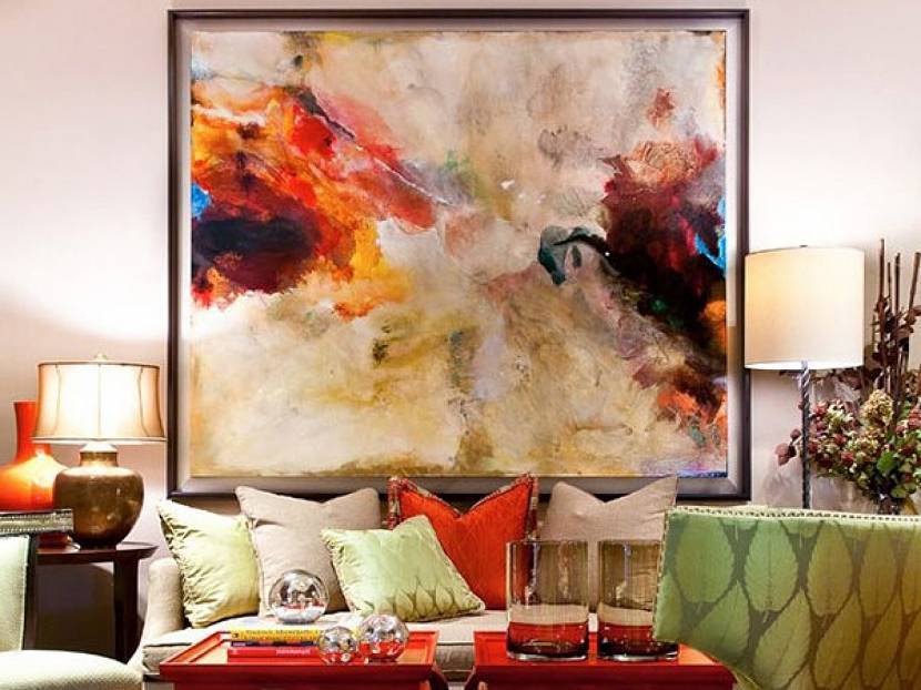 Хорошо смотрятся абстрактные картины в интерьере, оформленном в современном стиле. Они открывают большие возможности для работы с цветом, помогают расставлять акценты и заряжать энергией нейтральное оформление. В них полностью отсутствует сюжет, это позволяет вешать полотна в любой комнате, не заботясь о соответствии изображения назначению помещения. Выбирая произведение, нужно помнить о том, что каждое несет в себе определенную эмоцию. Она неизменно будет вызывать ответную реакцию при созерцании. Поэтому людям, склонным к депрессиям, мрачные картины не подходят. Лучше покупать те, что будут заряжать позитивом и дарить хорошее настроение.