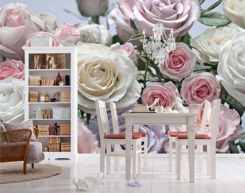 - бежевые и бледно-розовые розы подходят для английского стиля, кантри и шебби шик;