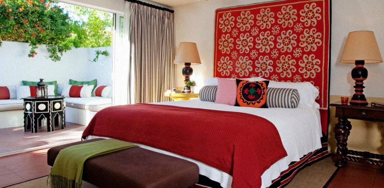 Помните еще и о дополнительном декоре: например, комбинируйте обивку подушек с красными маками на стенах, или повесьте сиреневые шторы – в тон лаванде.