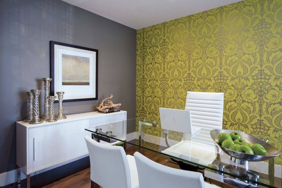 Зеленый приглушает звуки, поэтому такие обои клейте в комнатах, окна которых выходят на проезжую часть.