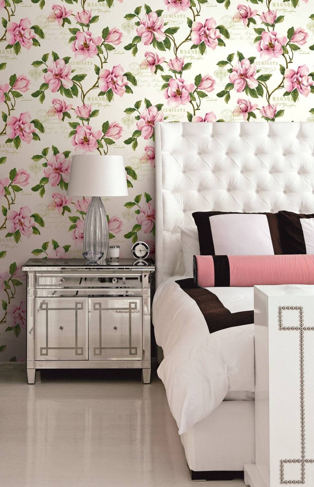 Это целомудренность и женское обаяние. Стены украшенные лепестками магнолии часто встречаются в декоре спальни.