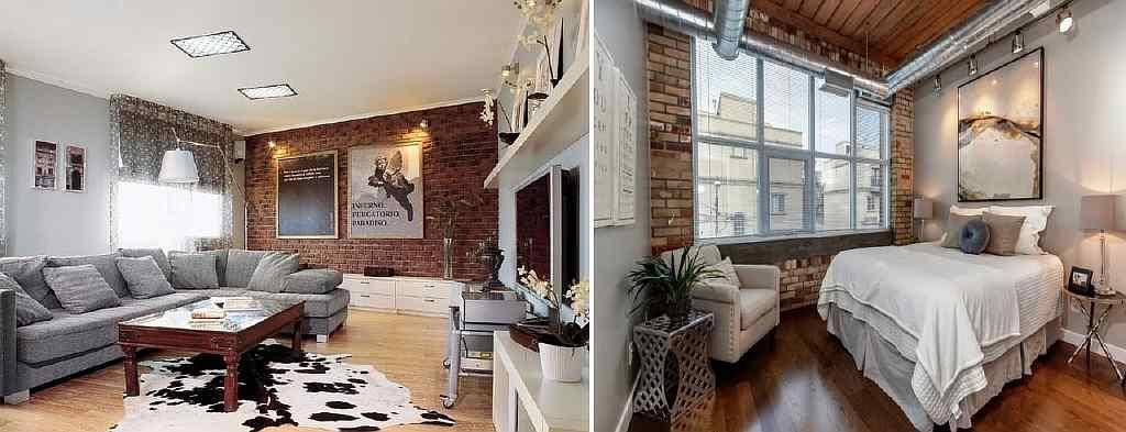Это популярный чердачный стиль, в котором приветствуется состаривание стен. Можно имитировать простую черновую штукатурку, кирпичную кладку разных цветов. Таким образом можно оформить не все стены в комнате, а только одну – акцентную.