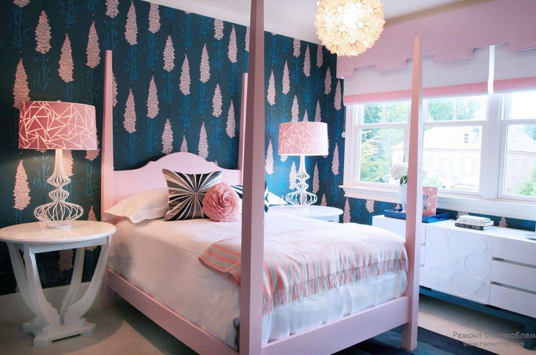 Синий и голубой цвета обоев традиционно считаются «мальчиковыми», а не оттенками для девичьей спальни. Но голубая и бирюзовая гамма идеально подходит для помещения, расположенного на южной стороне.