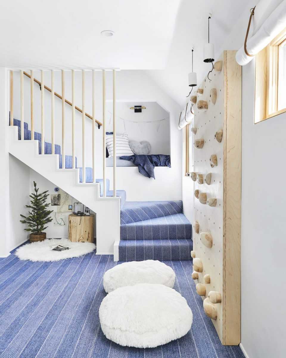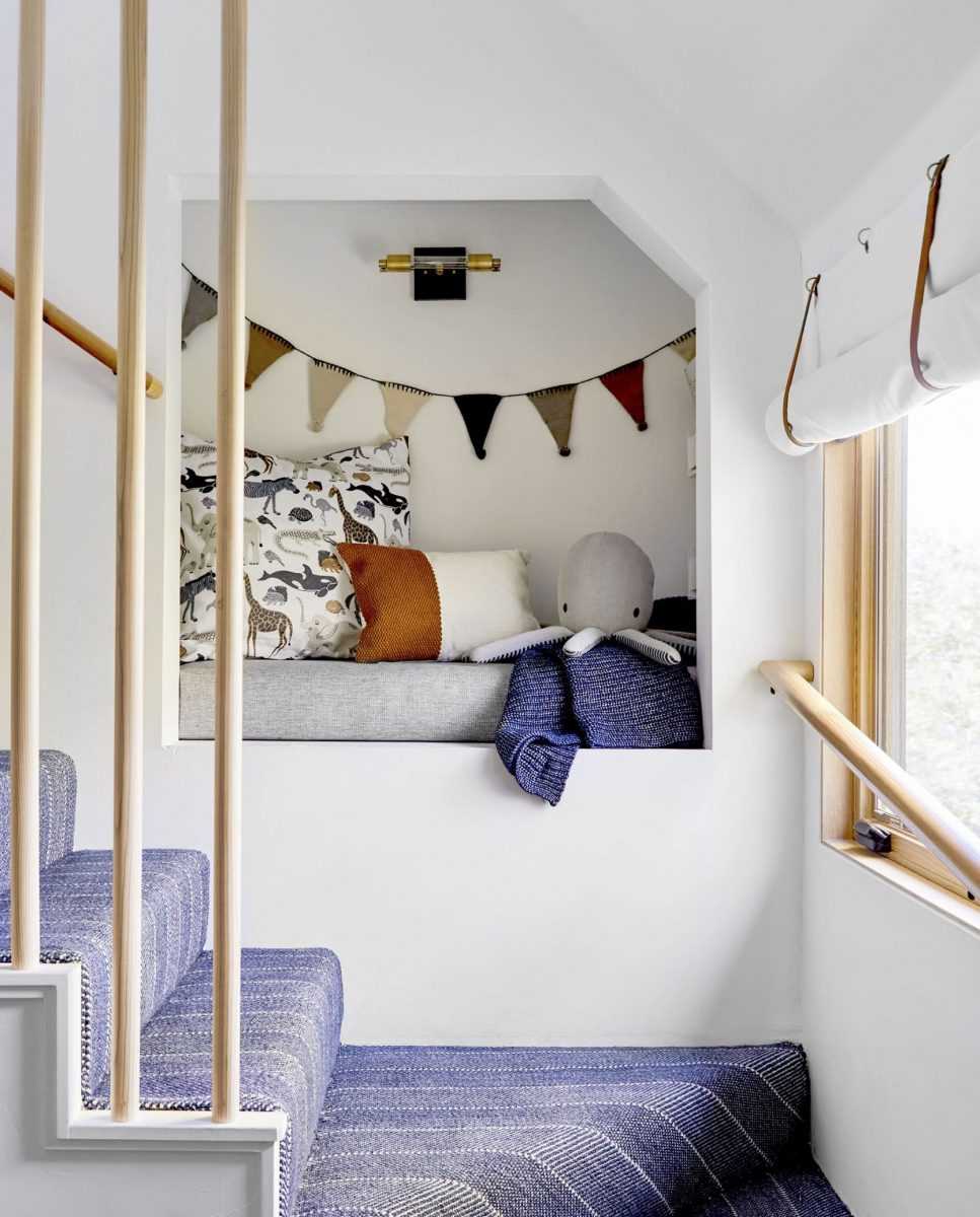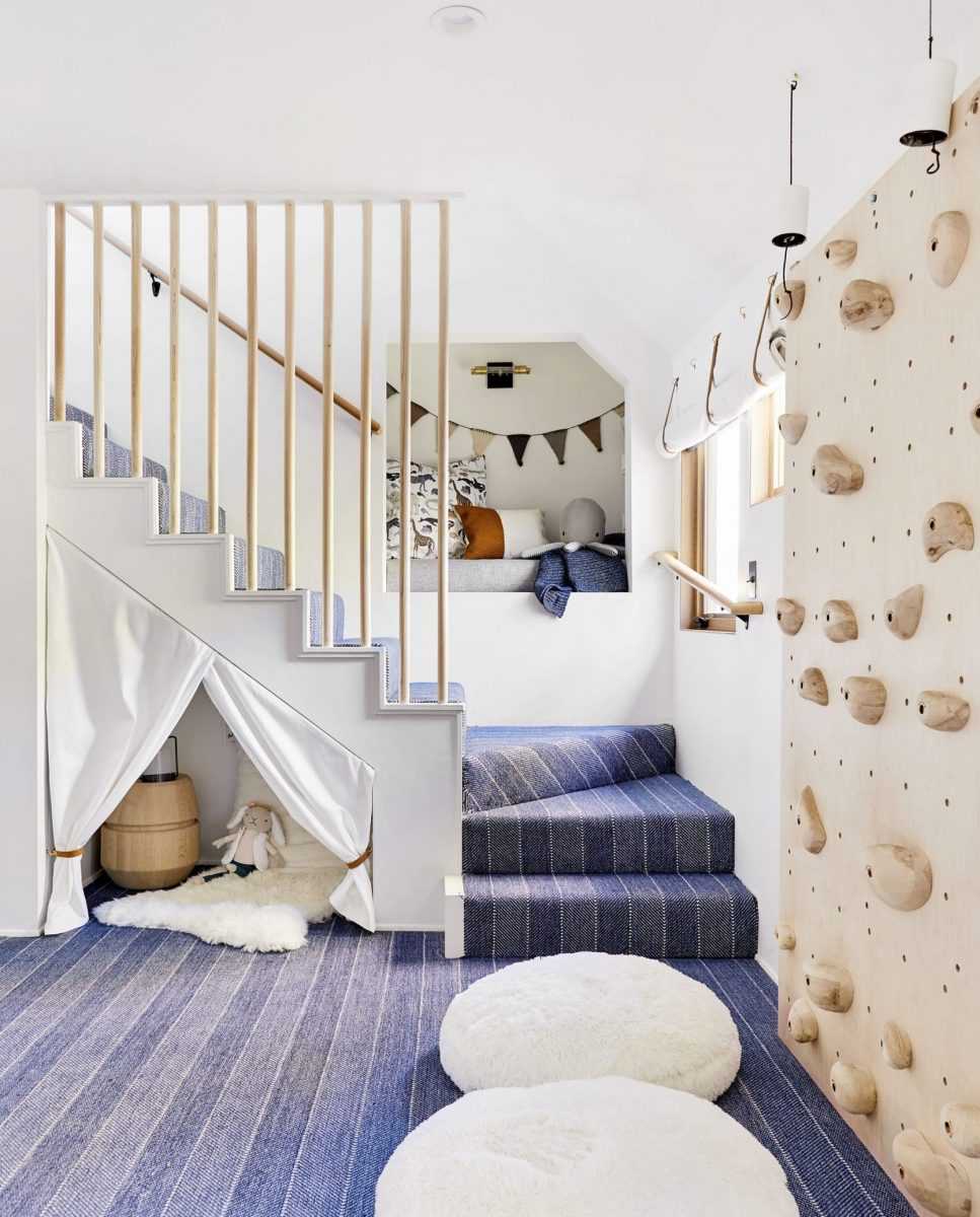 Если зал или коридор, соединяющие детские комнаты, достаточно просторны, они могут успешно исполнять роль игровой комнаты, где на нейтральной территории братья и сестры будут контактировать друг с другом. В данной ситуации подобная комната будет вместо спальни для разнополых детей.
