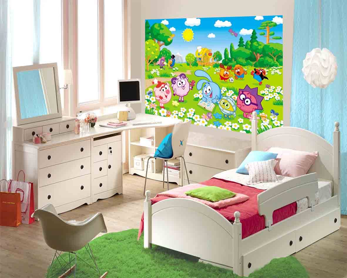 во вторую группу входят дети в возрасте от 2 до 5 лет, у которых круг интересов уже становится значительно шире, в данном случае подойдут более яркие обои, например, фотообои с героями из мультфильмов, особенно, если малыш обладает спокойным характером, в случае, если ребенок слишком активный и подвижный, наоборот лучше выбрать оттенки поспокойнее;