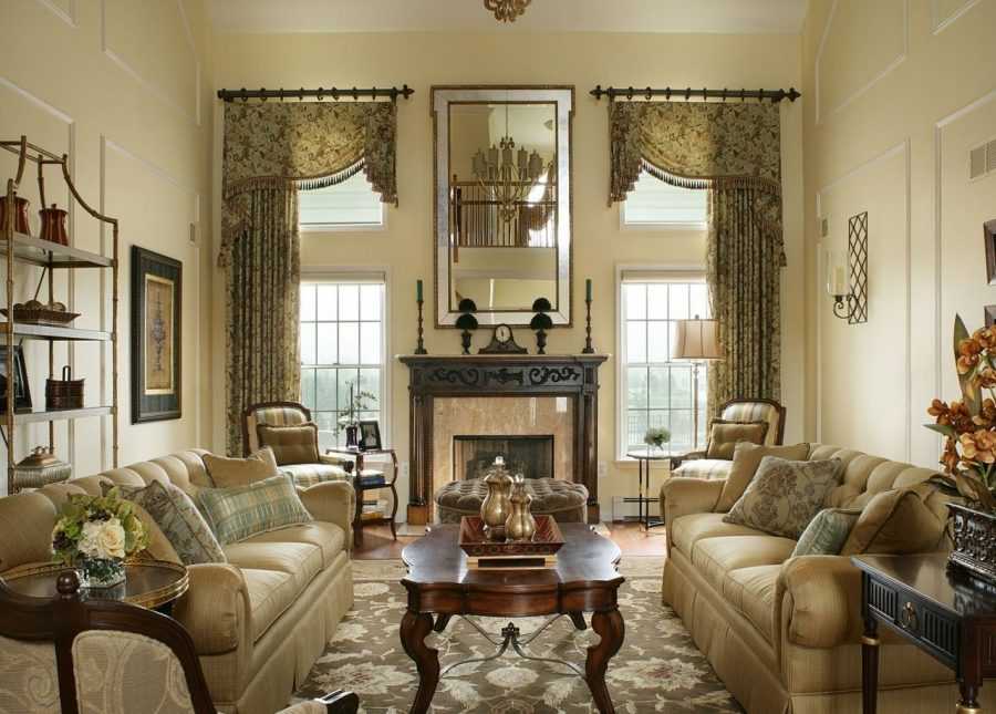 Классический стиль гостиной соблюдает строгие пропорции, симметрию, использует правильные формы, поэтому в таком дизайне преобладают мягкие и спокойные краски: