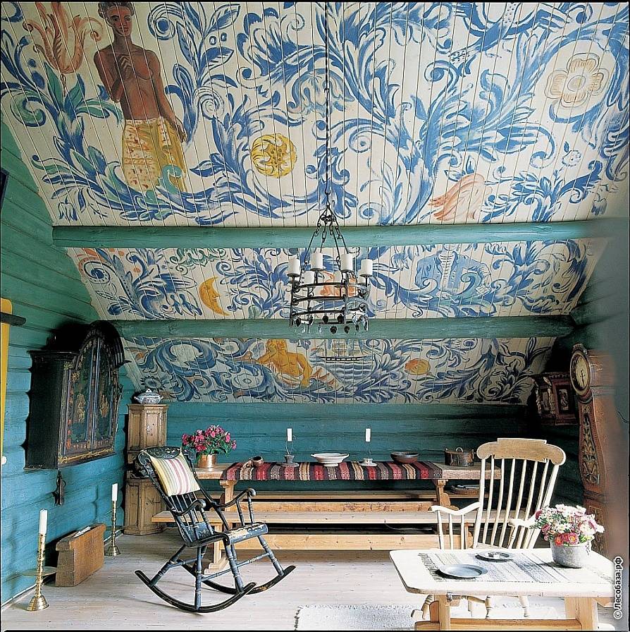 В прошлом, жители этой северной страны очень любили украшать свои жилища растительным орнаментом, напоминающими русскую роспись шкатулок. Зеленый, ярко красный, голубой цвета покрывали стены и потолки старинных домов. Этот стиль прозвали «норвежским кантри». И в наше время современные дизайнеры с удовольствием используют народные мотивы в своих проектах.