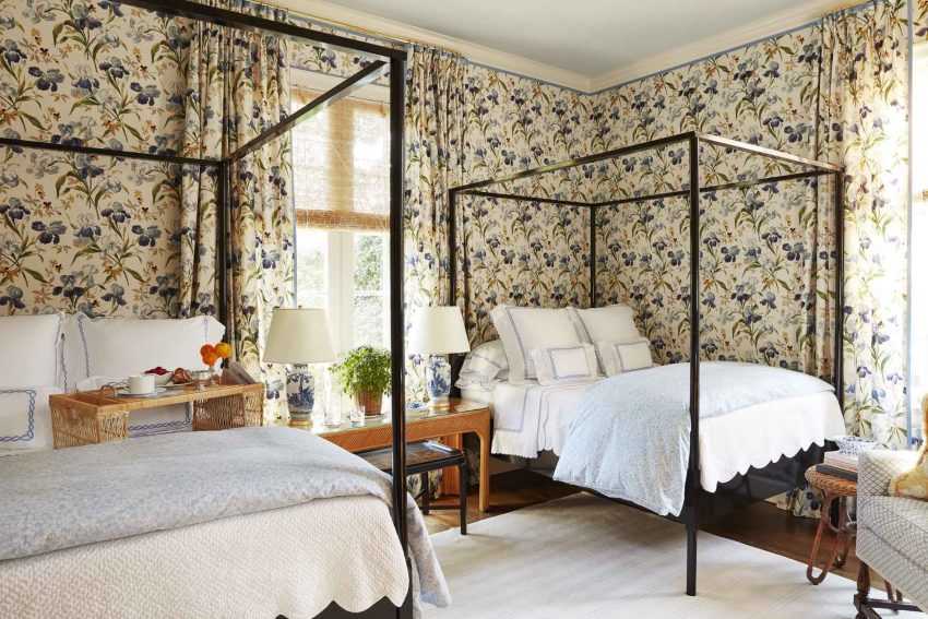 Обоям с крупным рисунком нет места в маленькой спальне.