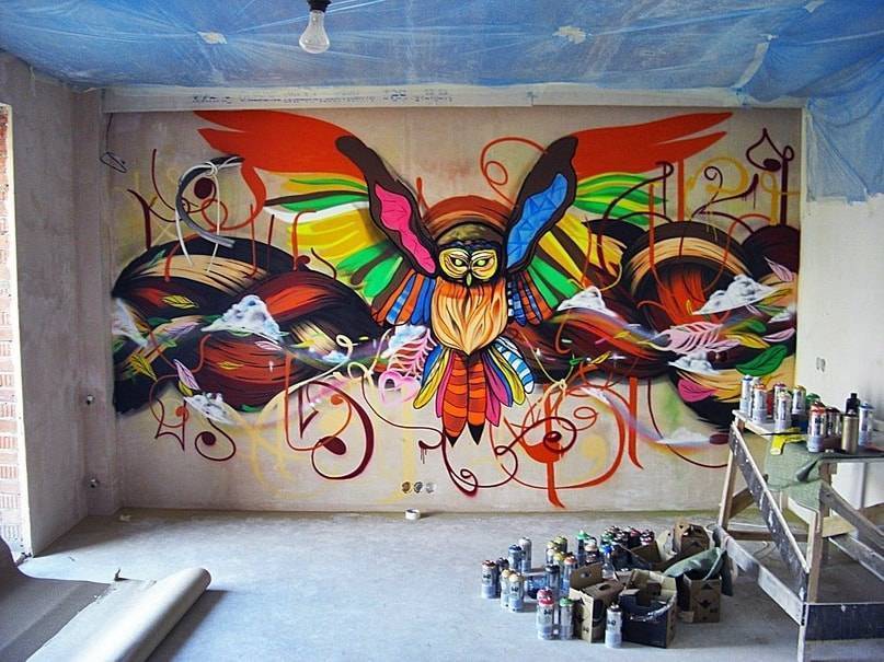 Кроме того, есть два важных аспекта, которые повлияют на общую картину интерьера. Конечно же, гамма цветов граффити должна гармонично сочетаться с интерьером, и тематика изображения должна идеально подходить для того или иного помещения.