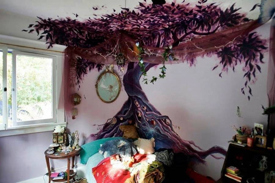 Настенное изображение может быть выполнено в любом стиле, подходящем к основному оформлению помещения. Это может быть как яркий, кричащий и объемный рисунок, так и лёгкий, воздушный, еле заметный. В этом деле всё зависит от задумки художника.