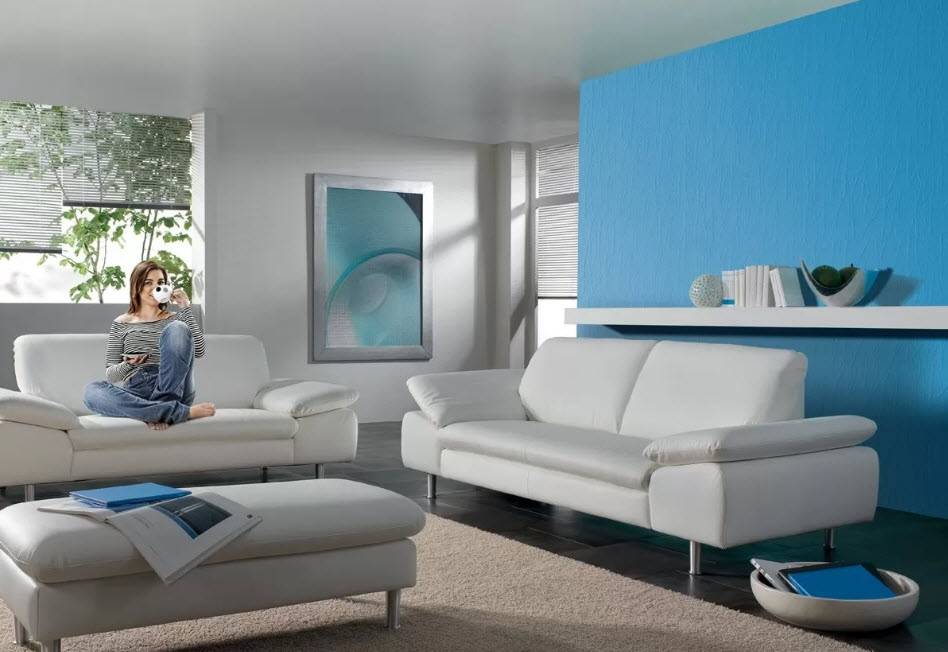 К светлой мебели подходят и яркие, и темные, и пастельные тона. Но лучше, чтобы предметы интерьера не сливались с фоновым оттенком стен, а отличались на пару тонов.