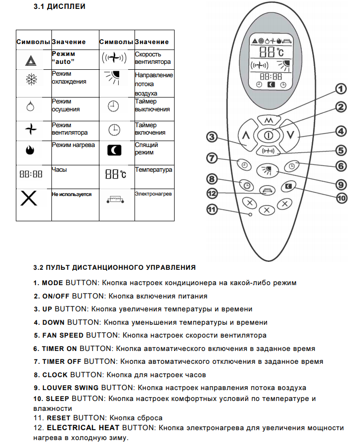 AUTORESTART – Данный режим не указан на пульте управления, но его наличие очень важно. Данная программа срабатывает при неожиданном отключении электроэнергии, самостоятельно возобновляя работу кондиционера в заданном режиме, когда электричество появится заново