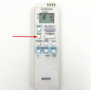 На этом пульте дистанционного управления хорошо видна нужная нам клавиша «MODE», с помощью которой осуществляется переключение режимов работы кондиционера