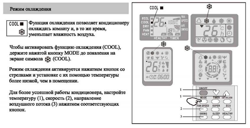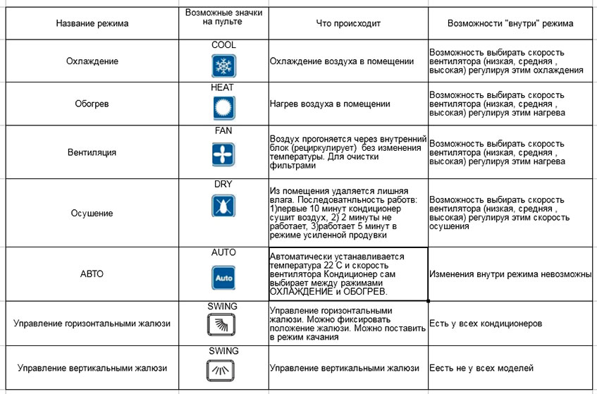 Ознакомиться с режимами кондиционера с легкостью можно, используя инструкцию
