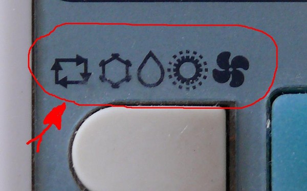Вы хорошо рассмотрели свой пульт ДУ, но, ни на нем, ни под крышкой клавишу «MODE» не обнаружили. Зато вы видите пиктограммы «капелька», «вентилятор», «снежинка» и «солнышко». Нам нужно «солнышко», его и выбираем.