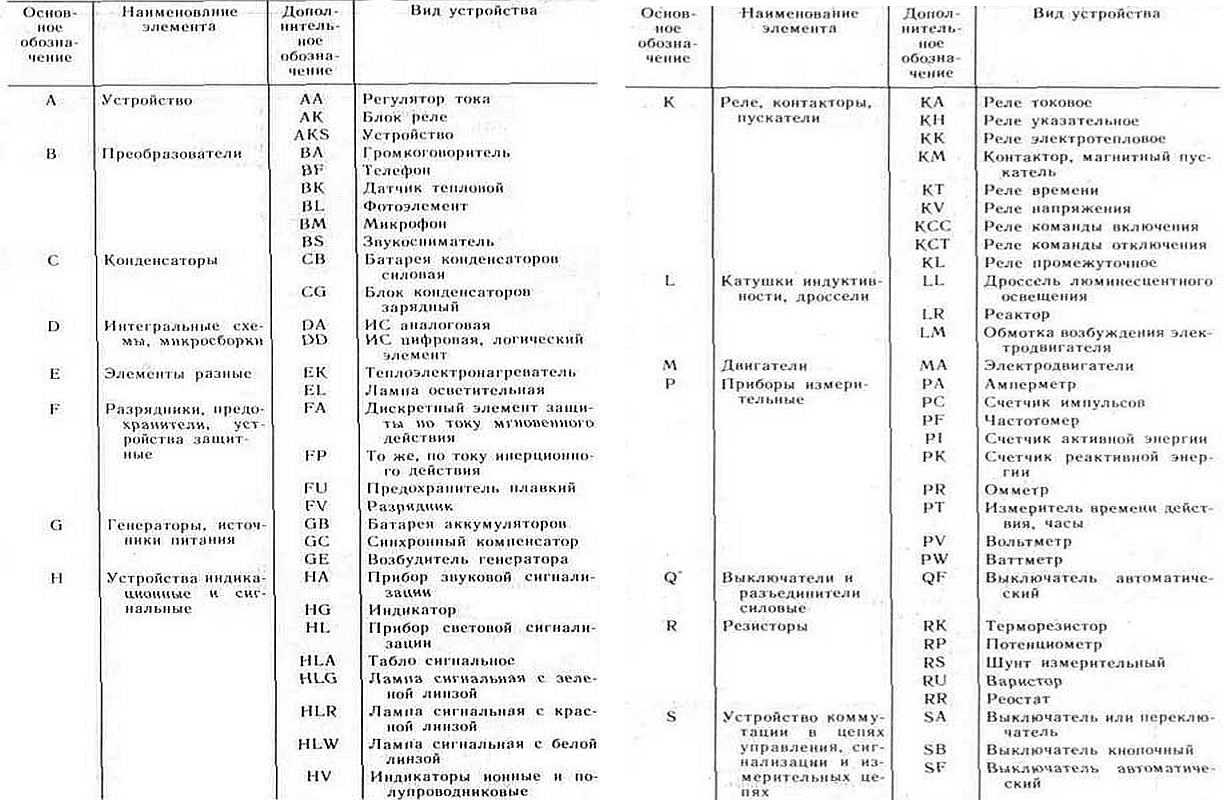 Буквенные обозначения в электрических схемах