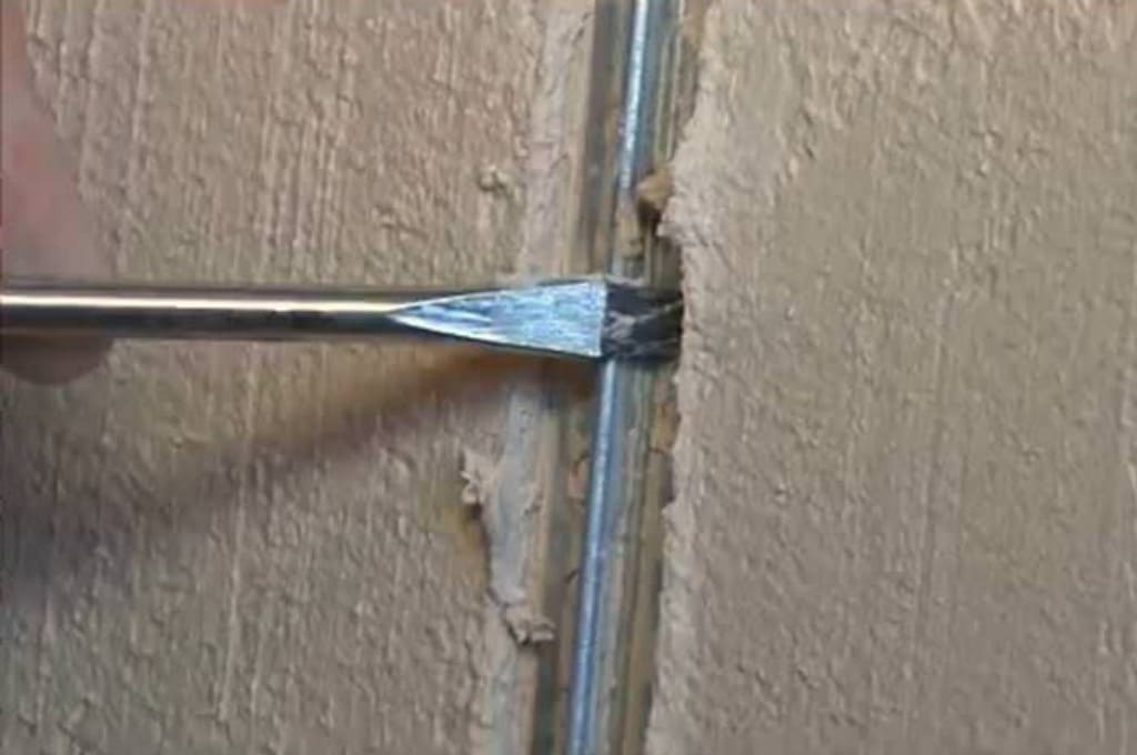 Когда были обнаружены под отделкой кирпичные стены, то нужно вооружиться молотком. Им нужно поотбивать остатки раствора, который выпирает из щелей, а также ненадёжные кусочки. Затем, также грунтуем в несколько слоёв и приступаем к основной работе. В этом случае рекомендуется использовать только цементно-песчаную смесь.