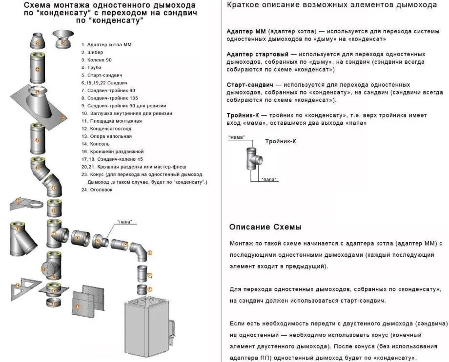 - конструкция размещается на полметра выше, чем прибор генерации тепла соединяется с дымоходной системой;